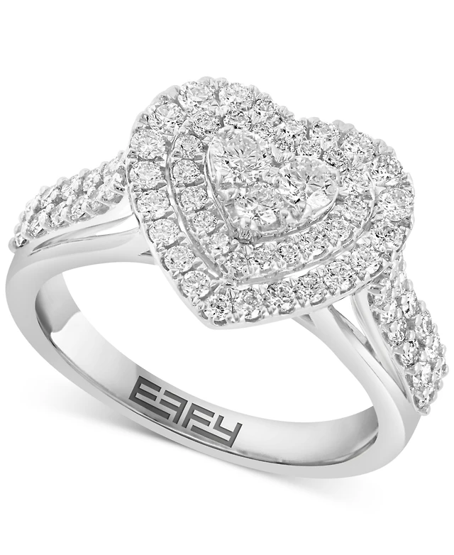 Now + Forever Princess & Round-Cut Multi-Diamond Heart-Shaped Halo Engagement Ring 1/2 ct tw 10K White Gold