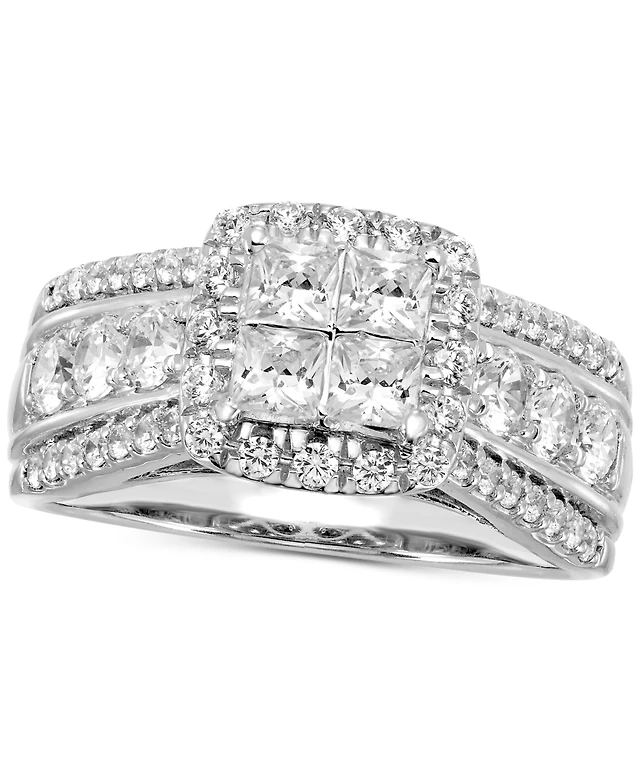 Previously Owned Diamond Bridal Set 4 ct tw Princess & Round-Cut 14K White Gold Size 5.5