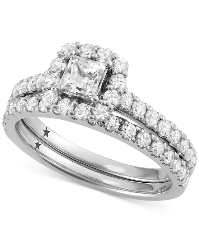 Previously Owned Princess-Cut Diamond Halo Bridal Set 1-1/5 ct tw 14K White Gold Size 8.75