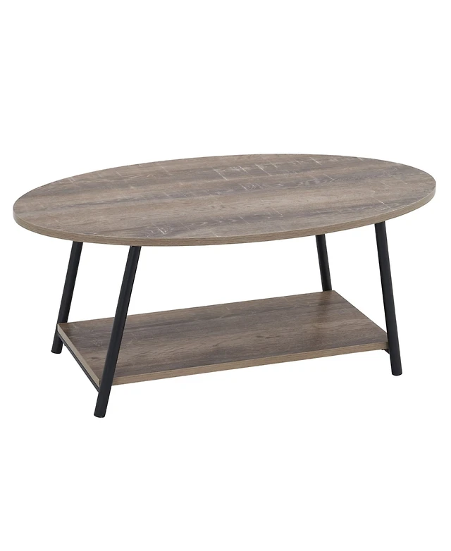 LuxenHome Mid-Century Modern Coffee Table with Storage and Slatted Sliding Doors Oval Center Table
