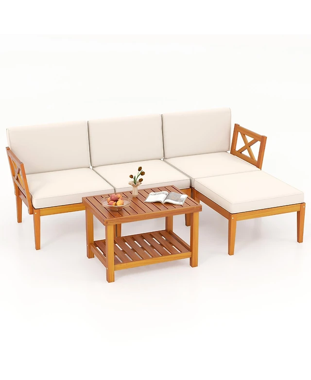 5PCS Patio Rattan Furniture Set Sectional Conversation Sofa w/ Coffee Table