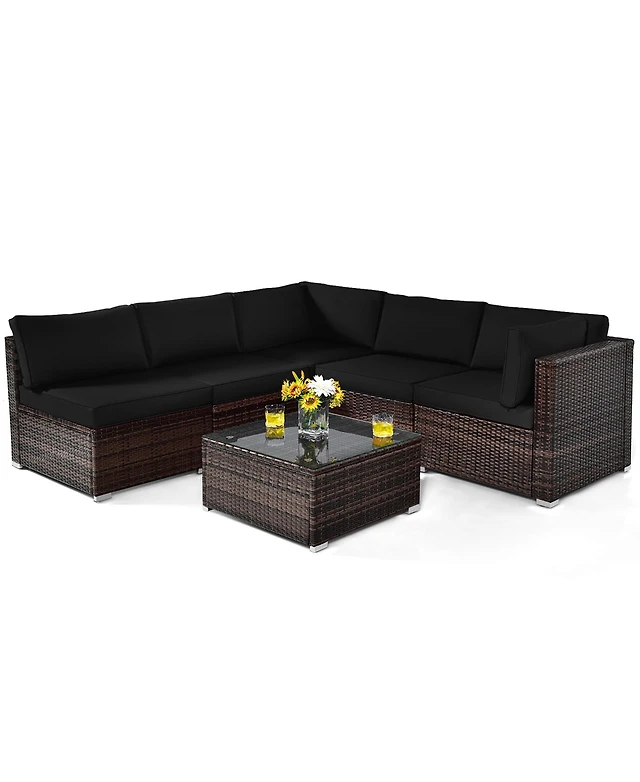 6 Piece Patio Conversation Sofa Set with Tempered Glass Coffee Table
