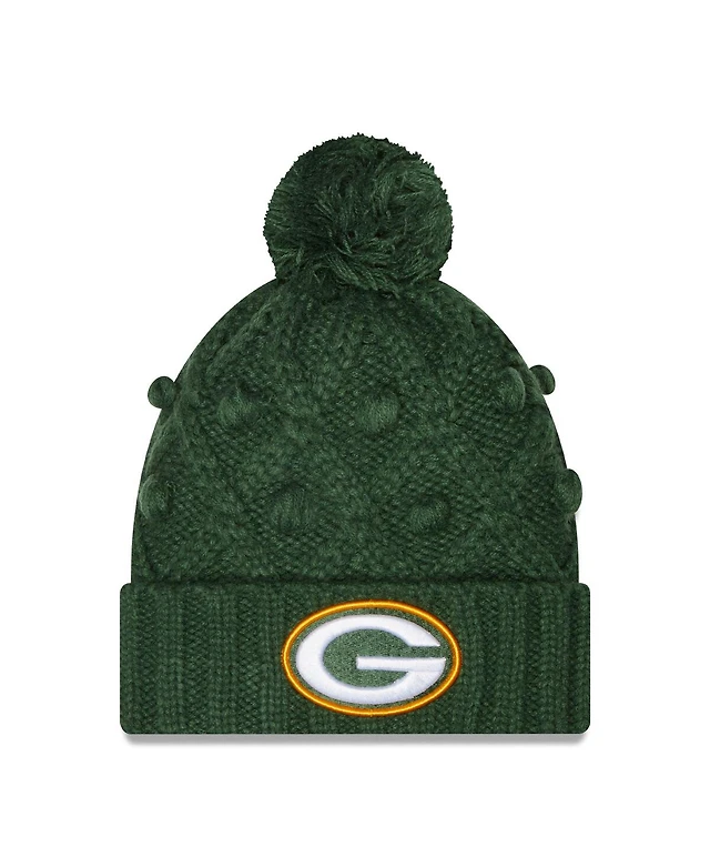 Big Girls New Era Green Green Bay Packers Toasty Cuffed Knit Hat with Pom