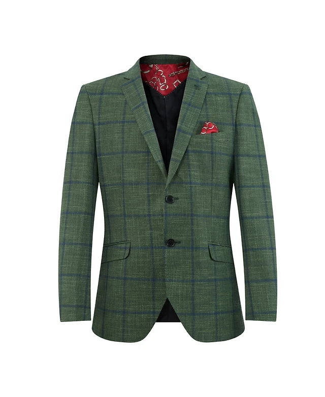 Elie Balleh Boys Green Slim Fit Plaid Blazer