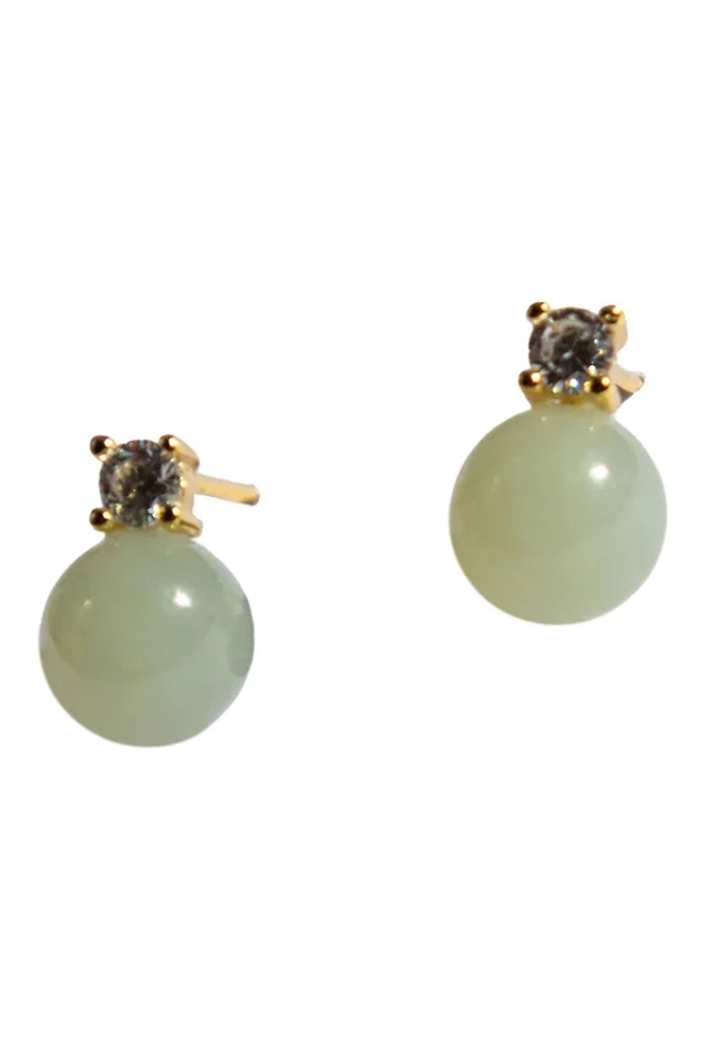 Esther — Green jade and zircon stud earrings