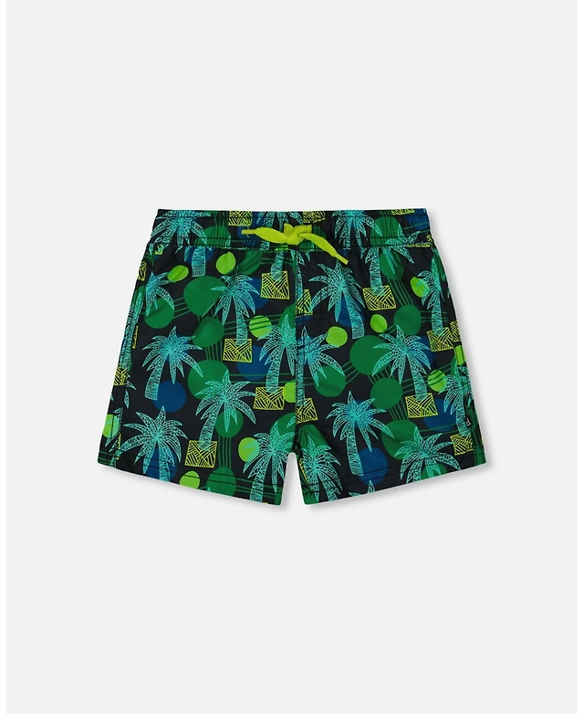 Boy Printed Swim Trunks Green Jungle On Black - Toddler|Child