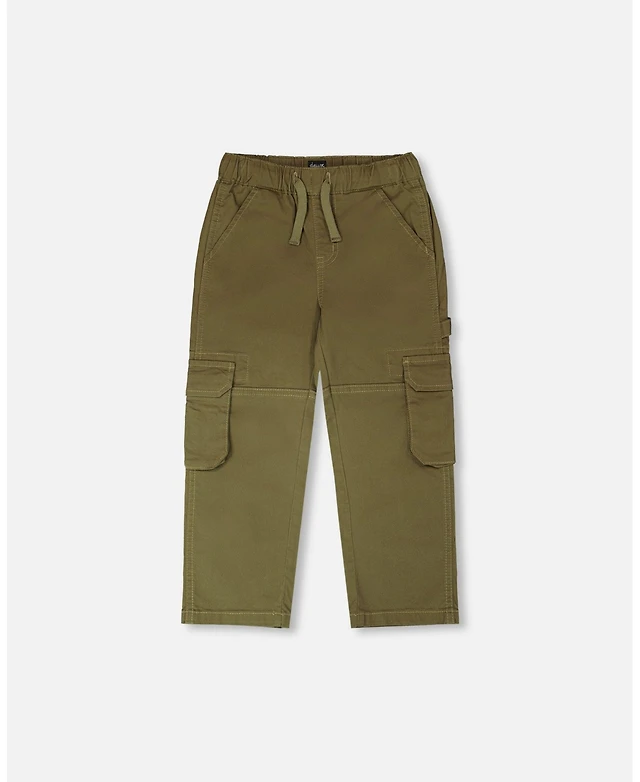 Deux par Baby Boys Stretch Twill Carpenter Pants Dark Khaki Green