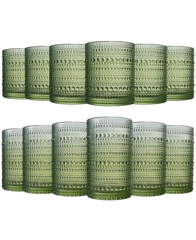 The Wine Savant Green Vintage Hobnail Colored Beaded Drinking Glasses, Set of 12