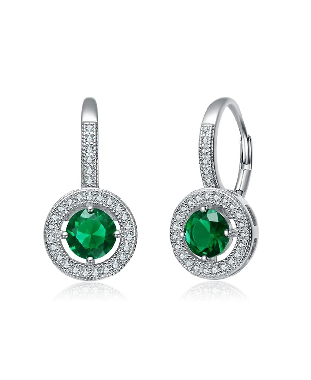 Vintage Rhodium-Plated Halo Earrings Sterling Silver with Green & Cubic Zirconia