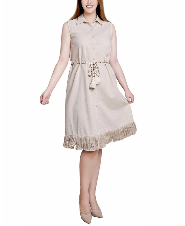 Ny Collection Plus Sleeveless Belted Chambray Dress