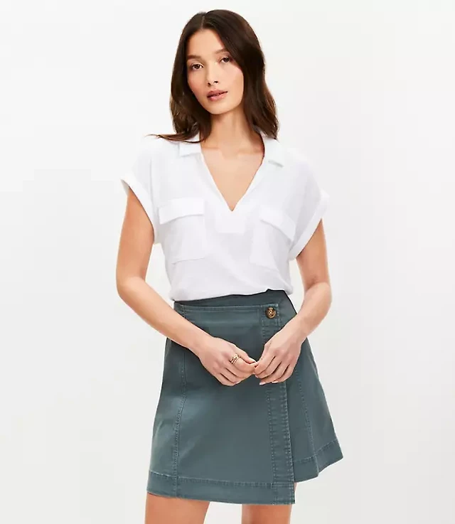 Lou & Grey Ribbed Softsculpt Split Neck Crop Top