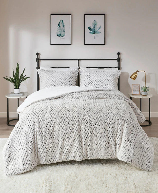 Closeout! Videri Home Cozy Sherpa 3 Piece Comforter Set, Full/Queen