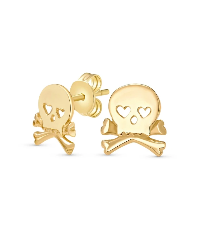 Bling Jewelry Whimsical Heart Eyes Pirate Skull & Crossbones Stud Earrings Sterling Silver