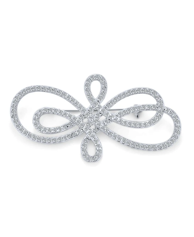Bling Jewelry Large Swirl Pave Cubic Zirconia Art Deco Fashion Infinity Brooch Pin Silver Tone Rhodium Plated
