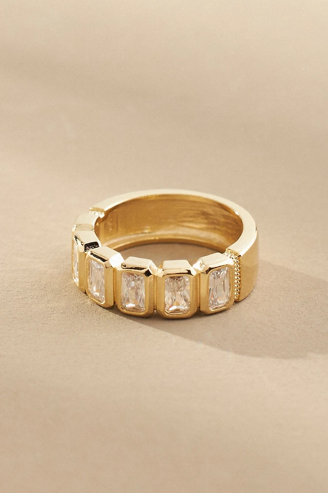 Lab-Created White Sapphire Stack Three Ring Set in Sterling Silver and 18K Two-Tone Gold Plate
