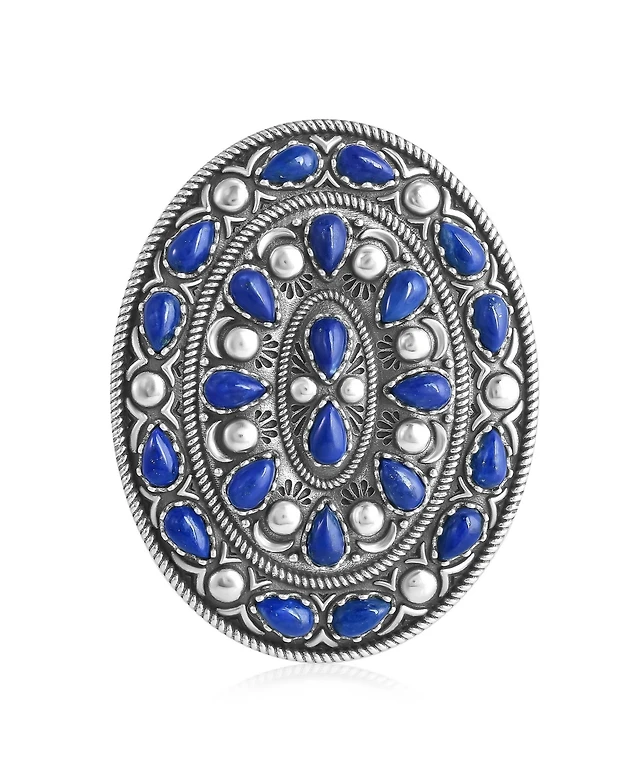 American West Jewelry Sterling Silver Lapis Cluster Gemstone Oval Pendant Enhancer
