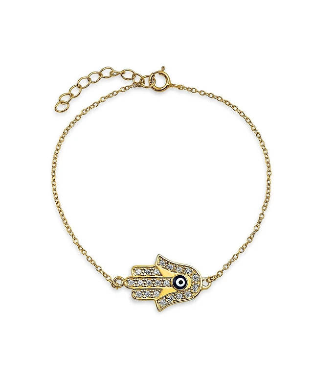 Bling Jewelry Turkish Evil Eye Hamsa Hand Pendant Necklace Cubic Zirconia Cz 14K Yellow Gold Plated Sterling Silver