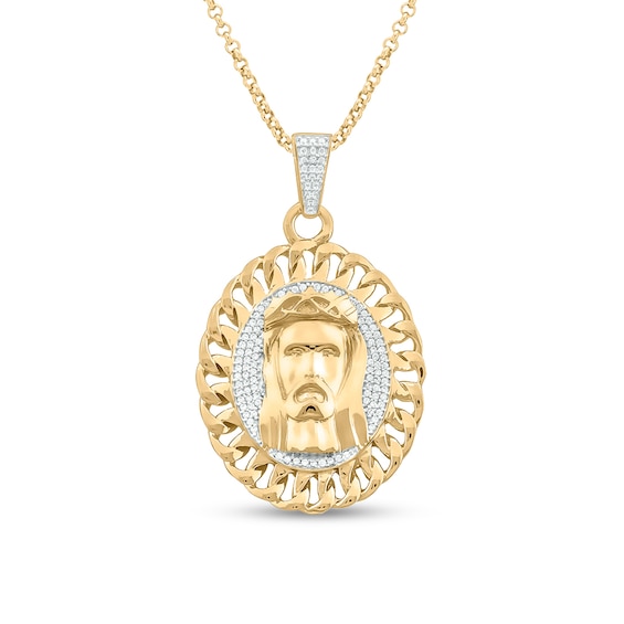 Men's 1/4 CT. T.w. Diamond Linked Chain Frame Jesus Pendant in Sterling Silver with 14K Gold Plate