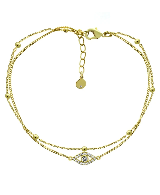 14k Gold-Plated Evil Eye Pave Necklace, 16" + 2" extender