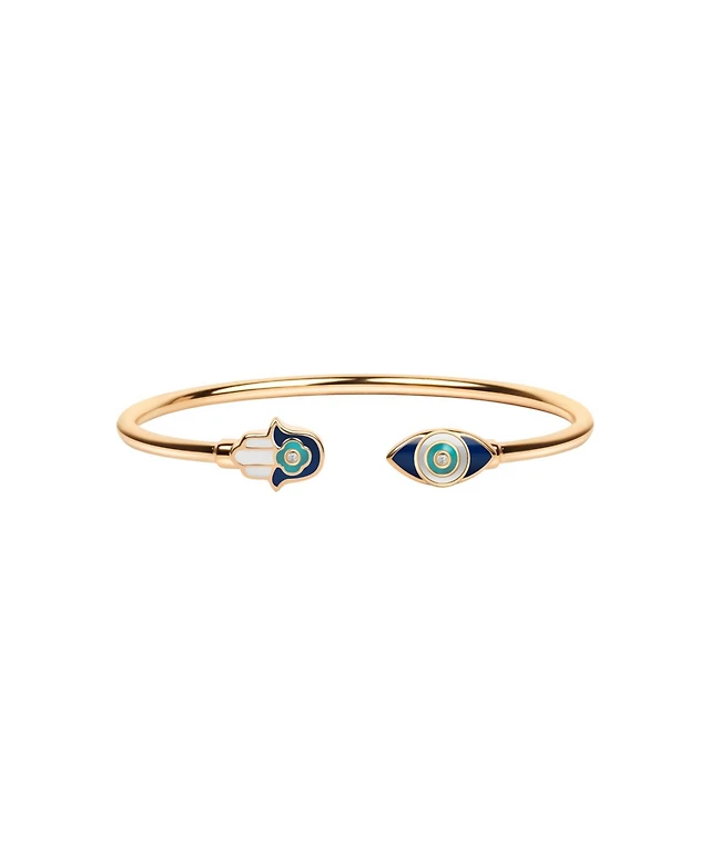 Hamsa Hand & Glass Evil Eye Charm Bracelet in 10k Gold