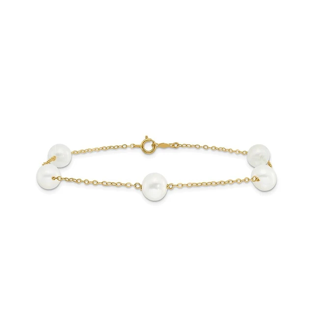 Curata Jewelry Solid 10k Yellow Gold 7-8mm Freshwater Cultured Pearl 5-station Anklet 10 Inch