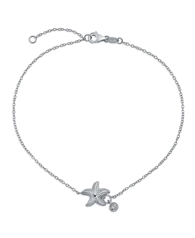 Bling Jewelry Nautical Cubic Zirconia Accent Dangling Starfish Anklet Ankle Bracelet Sterling Silver 9-10 Inch