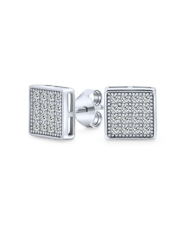 Bling Jewelry Black Square Cubic Zirconia Princess Cut Cz Stud Earrings Screw back .925 Sterling Silver