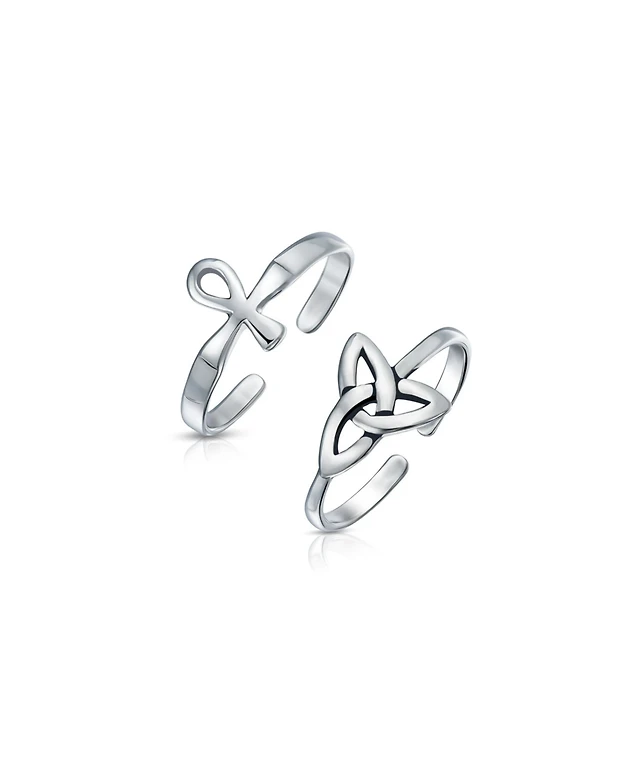 Bling Jewelry Religious Spiritual Midi Mid Finger Egyptian Ankh Cross Midi Toe Ring Silver Sterling Adjustable