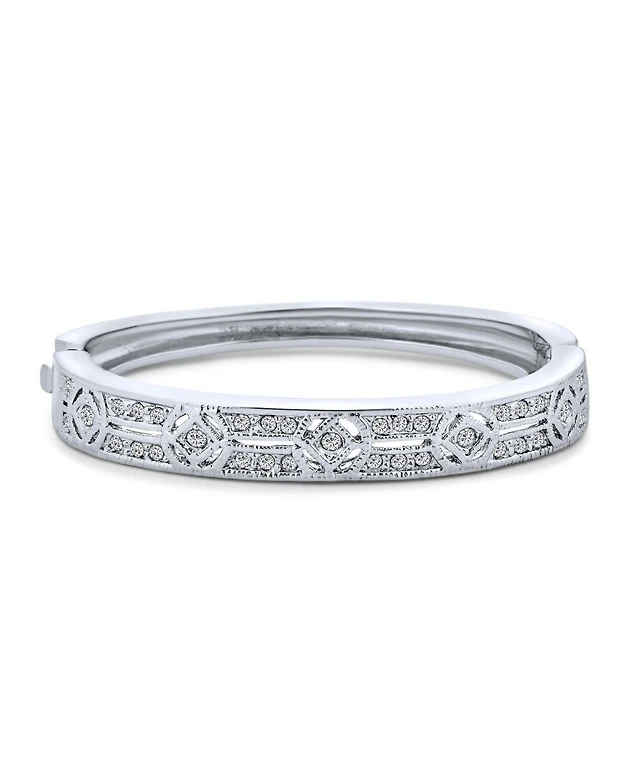 Bling Jewelry Wide Pink Rose Gold Plated White Crystal Encrusted Statement Stretch Bracelet
