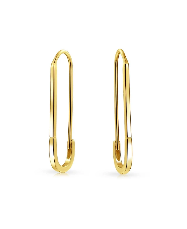 Bling Jewelry Love Lock Heart Safety Pin Dangle Earrings Gold Plated Sterling Silver