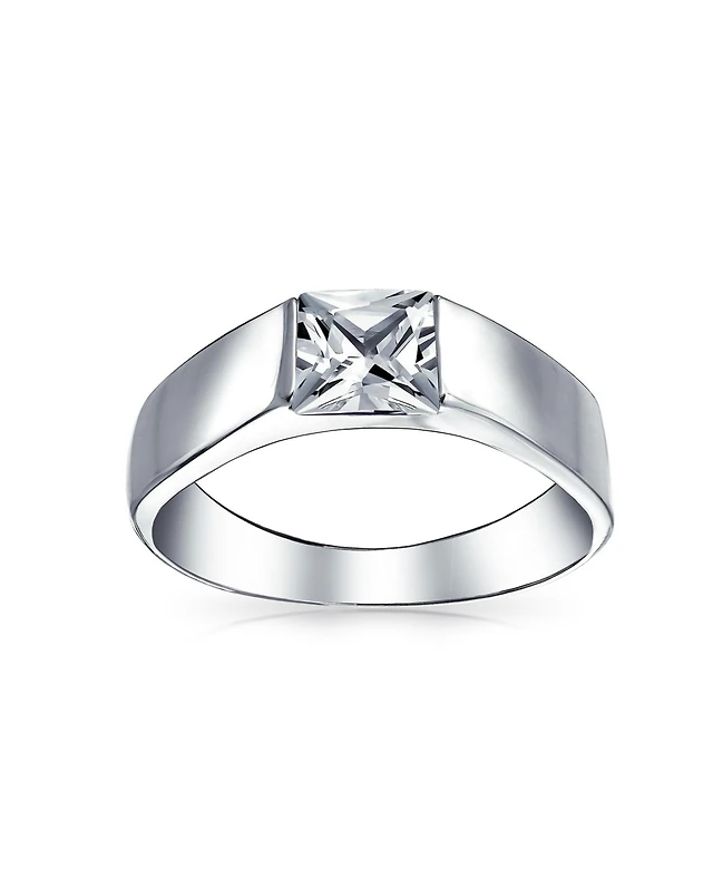 Bling Jewelry Two Row Cubic Zirconia Channel Set Princess Cut Cz Band Ring For Women925 Sterling Silver
