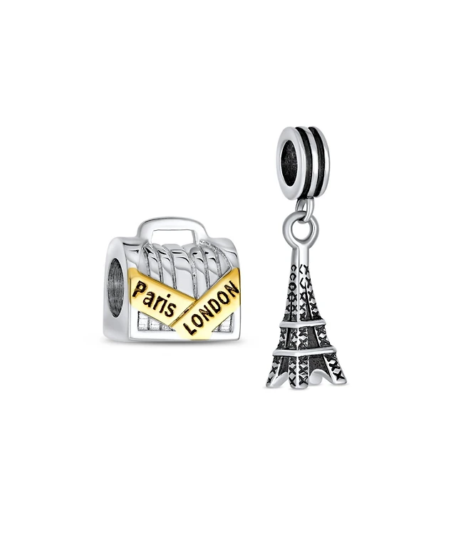 Bling Jewelry French Vacation Cz Accent Dangling Paris France Eiffel Tower Pendant Necklace Oxidized .925 Sterling Silver