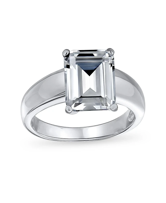 Bling Jewelry Simple Geometric 4CTW Rectangular Cubic Zirconia Emerald Cut Cz Statement Promise Ring Silver Tone Stainless Steel