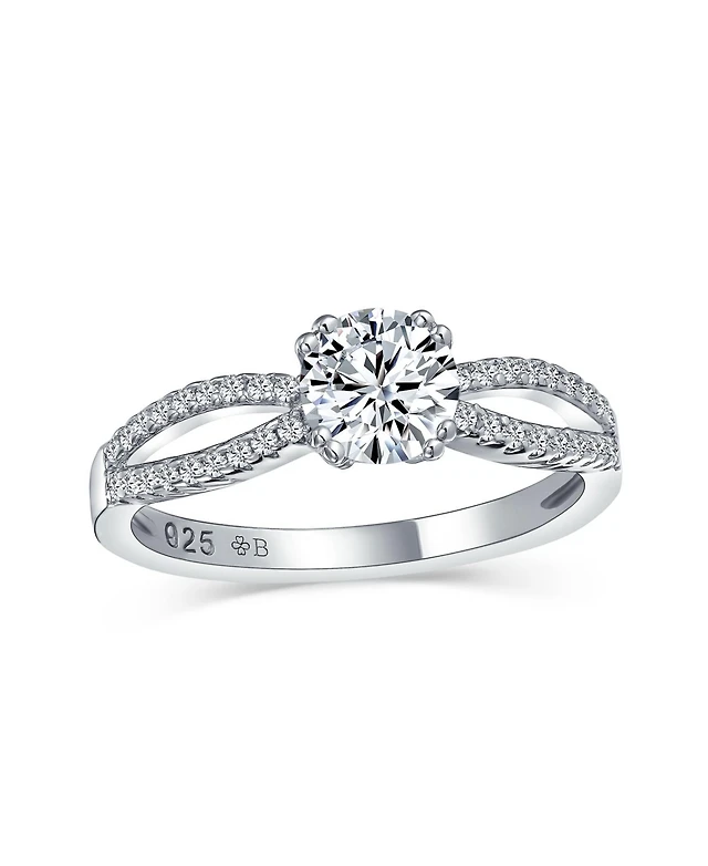 Bling Jewelry Modern Criss Cross Cz Accent Cocktail Statement Ring Brushed Matte Silver Tone Band