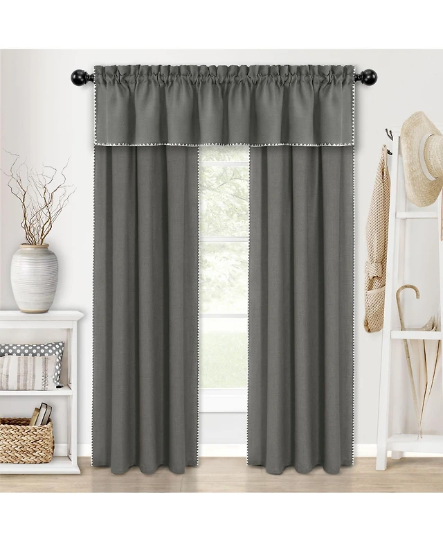 Kate Aurora 1 Piece Vienna Lux Embroidered Linen Blend Semi Sheer Grommet Window Curtain Panel - 84 in. Long