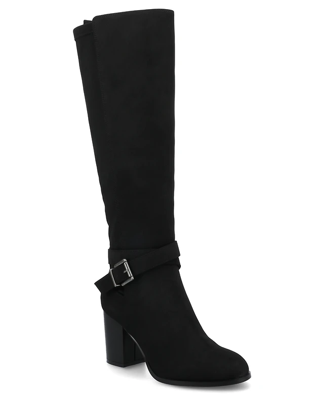Journee Women's Avalonn Buckle Strap Knee High Stacked Heel Inside Zipper Wide-Calf Comfort Dress Boots