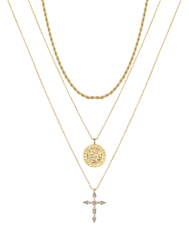Unwritten Cubic Zirconia Saint Christopher Cross Layered Pendant Necklace Set