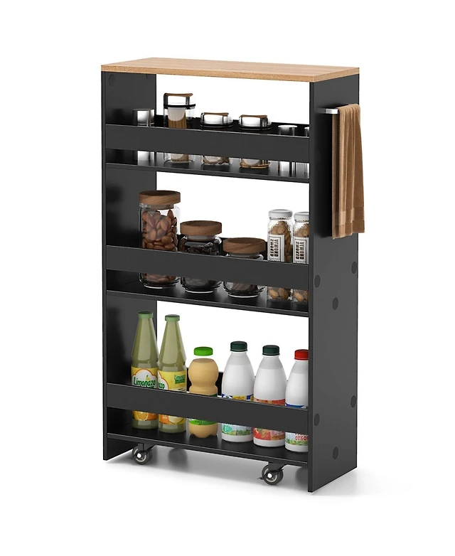 4-Tier Rolling Storage Cart Slim Kitchen Cart on Wheels with Open Shelves and Handle