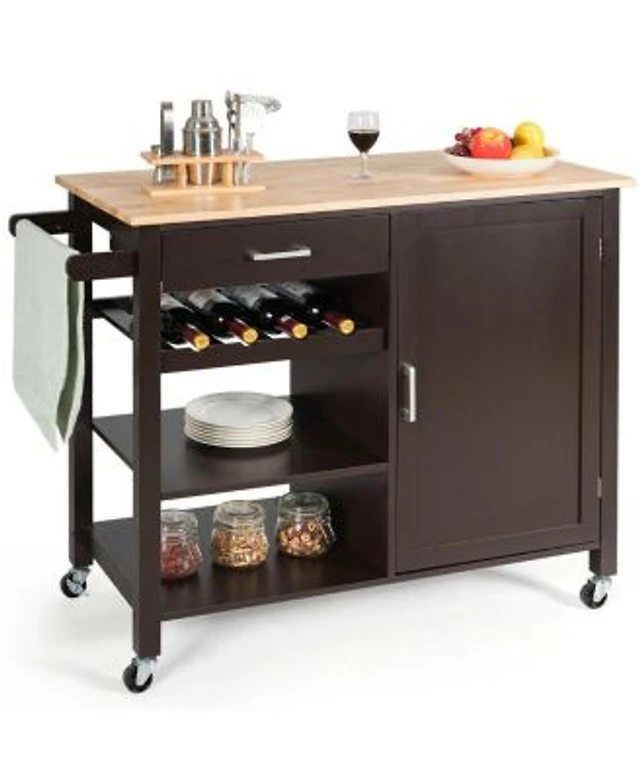 Gymax Rolling Kitchen Island Cart w/ Rubber Wood Top Drawer