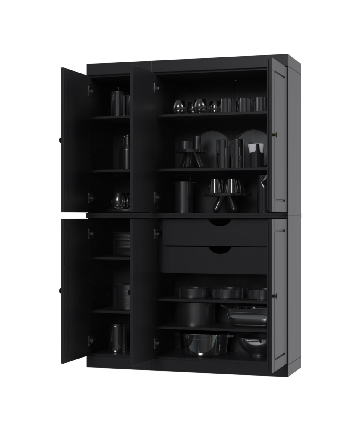 Gymax Pantry Cabinet 67'' Tall Kitchen Floor w/ 2 Removable Shelves Drawers