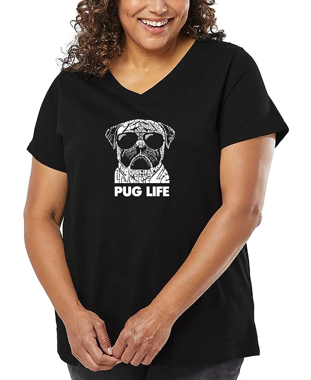 La Pop Art Plus Pug Life Word V-Neck T-Shirt