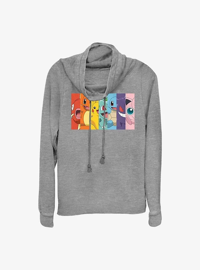 Pokemon Rainbow Faces Cowl Neck Long-Sleeve Top