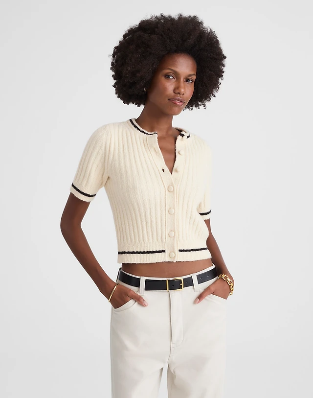 Houndstooth Crewneck Cardigan 100% Merino Wool | Madewell