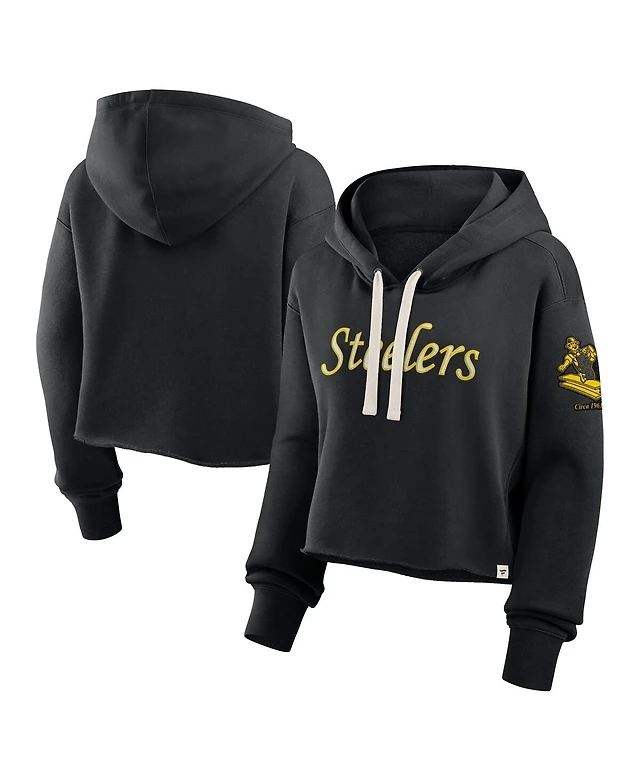 Fanatics Women's Black Pittsburgh Steelers Oversized Hometown Heritage Cropped Hoodie