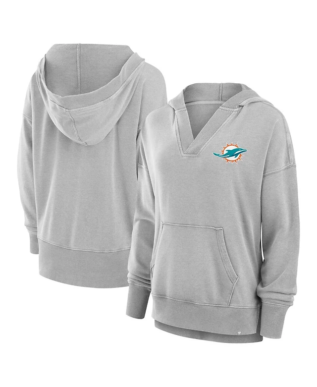 Fanatics Women's Heather Gray Miami Dolphins Initiative Snow Wash French Terry V-Neck Pullover Hoodie