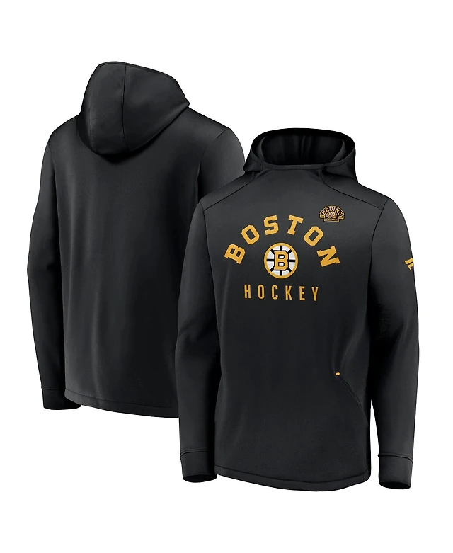 Men's Fanatics Black Distressed Boston Bruins Centennial Lockup Authentic Pro Pullover Hoodie