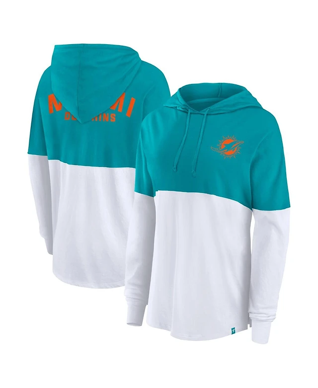 Fanatics Women's Aqua/White Miami Dolphins Backup Option Long Sleeve Hoodie T-Shirt