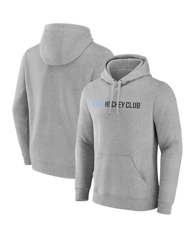 Fanatics Men's Heather Gray Utah Hockey Club Wordmark Logo Fleece Pullover Hoodie