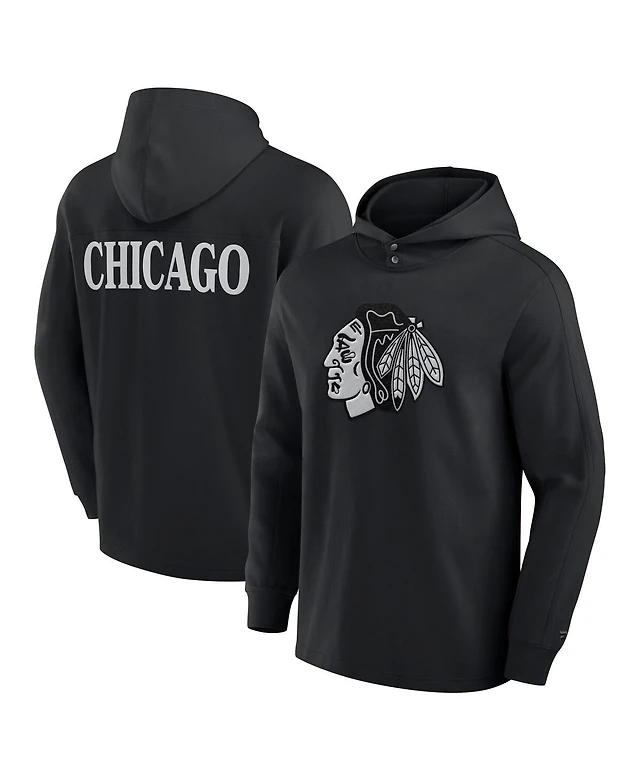 Fanatics Men's Black Chicago Blackhawks Elements Blaze Tri-Blend Long Sleeve Hoodie T-Shirt