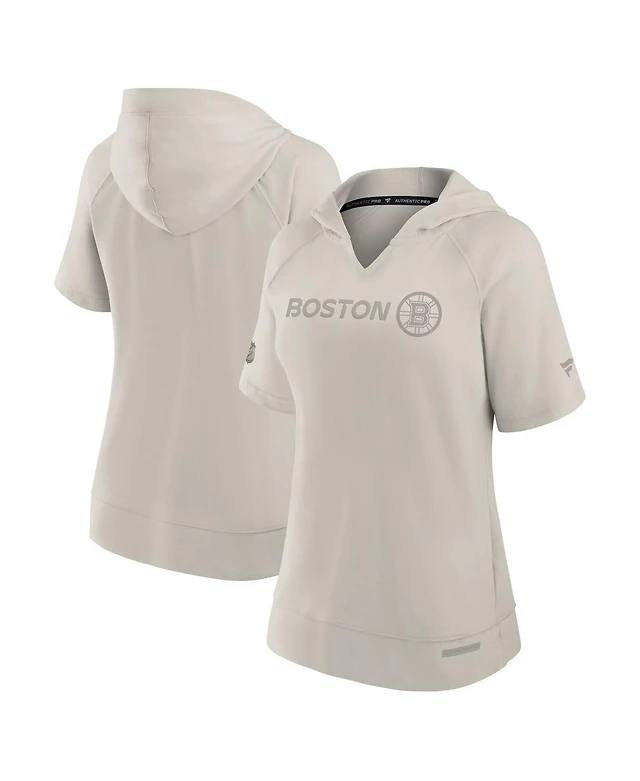 Fanatics Women's Cream Boston Bruins Authentic Pro Road Fashion V-Neck Hoodie T-Shirt